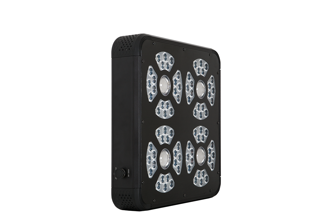 La combinaison de 4 LED COB EPI® de 63 watts à haute pénétration et de 80 LED de 3 watts permet une absorption maximale de la lumière par les plantes et une pénétration incroyable, même dans les zones protégées par les branches et le feuillage.